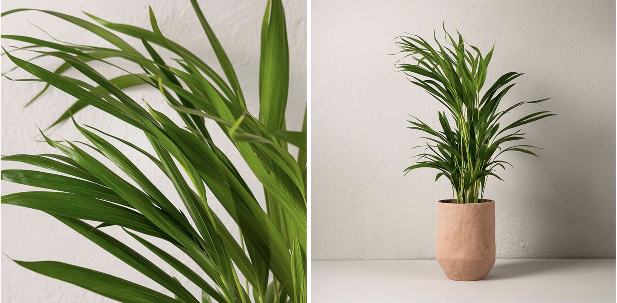 Det här är växten som tar tropikerna hem till dig (men du slipper den fuktiga värmen). Dessutom hjälper den till att rena luften. Har du husdjur? Välj Guldpalm! Snäll mot allt levande. Och lättskött.