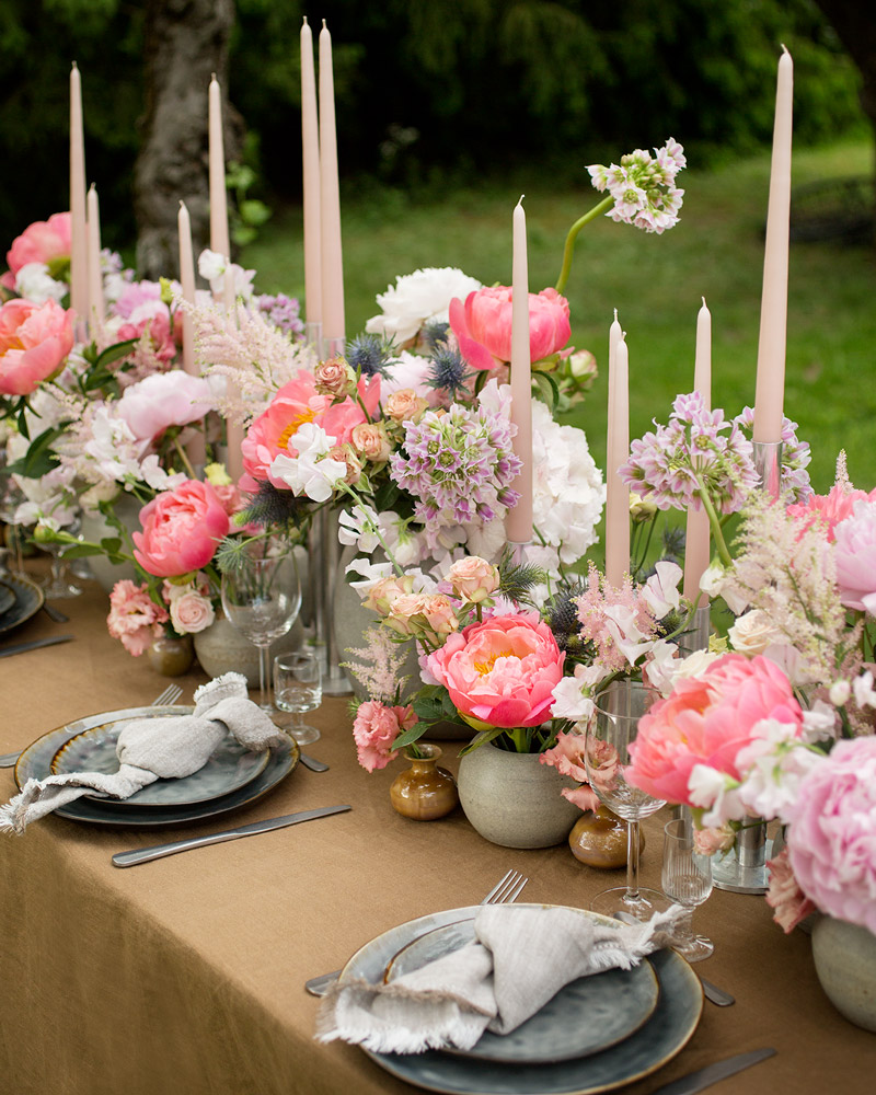 Pioner i olika rosa nyanser gör sig sagolikt vackra till din sommardukning.