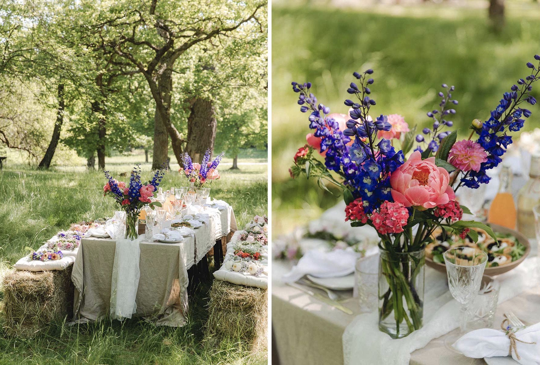 Vill du lägga lite extra tid på midsommardukningen i år? Varför inte flytta ut midsommarbordet på en vacker äng omringad av grönska och blommor. Utomhus finns massor av möjligheter att skapa en mysig tillställning och bjuda gästerna på det lilla extra.